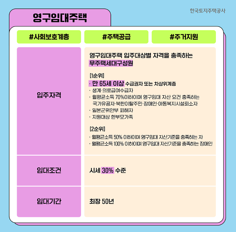 - 최장 50년까지 거주할 수 있어, 사실상 평생 주거가 가능합니다.