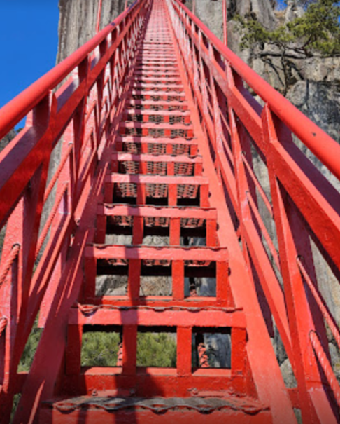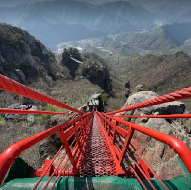 사진에서 보다시피 삼선계단(삼선구름다리)은 꽤 높습니다. 길이만 50m, 높이는 81m라 간담이 서늘해지는데요. 철제 계단만 127개입니다.ㅎㄷㄷ 고소공포증 있는 분들은 주의하세요! 일방통행이라 일단 올라가면 내려가고 싶어도 내려갈 수 없습니다. ^^; (앞사람 발꿈치만 보고 직진하시는 걸 추천)
