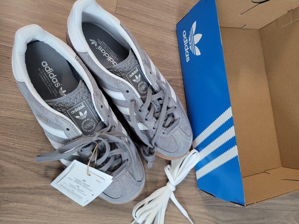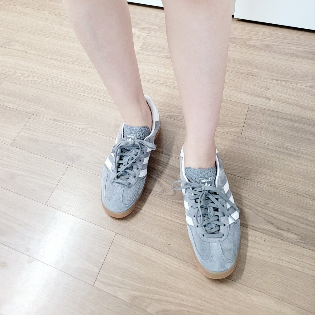 아디다스 가젤 회색 같은 경우는 아디다스 공식 홈페이지나 ABC마트 공식 홈페이지에서도 잘 없는 색상이라 뭔가 더 뿌듯한 느낌도 들고 잘 산 것 같기도하고 그러네요. 그런데 약간 겉면 재질이 스웨이드 비슷한 재질이라서 아주 한여름에는 조금 더 울 수 있을 것 같아요.