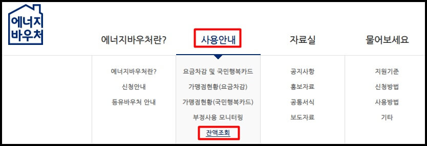 에너지바우처 잔액조회 하는 방법