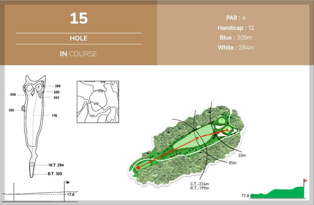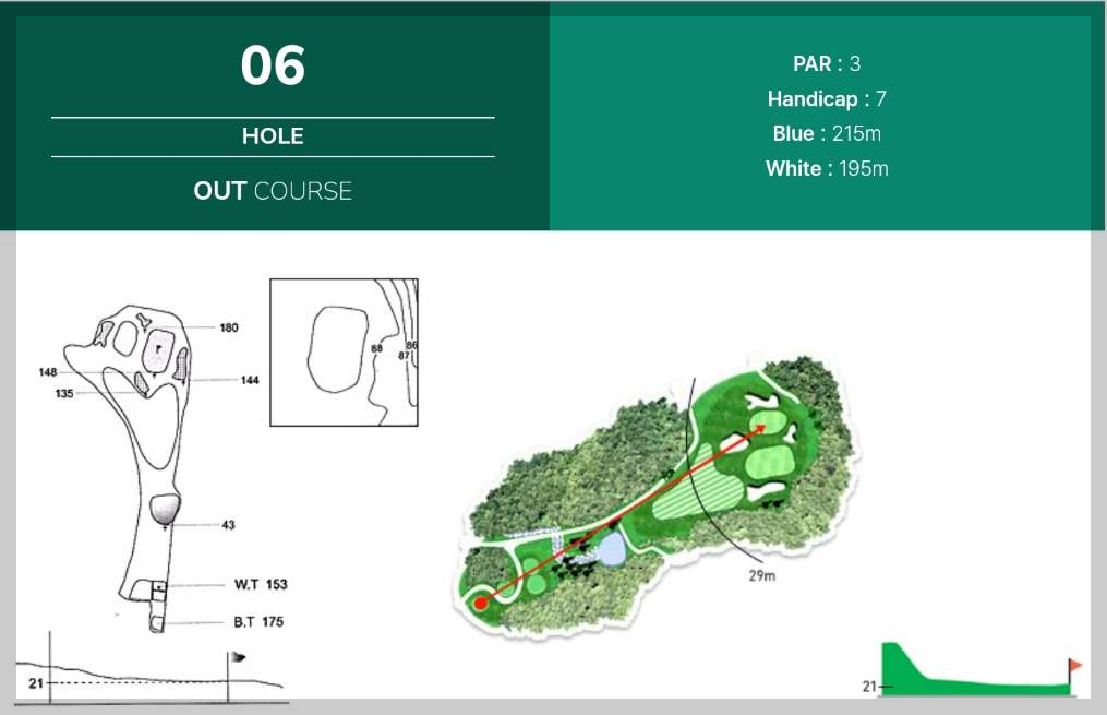 • 티잉 그라운드가 이전보다 우후방으로 이동됐으며 더욱 높아졌다. 티샷은 페어웨이 우측 중간지점을 공략하라.