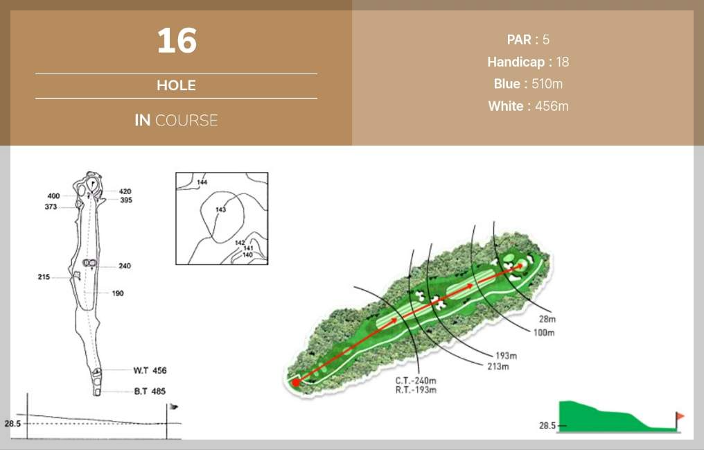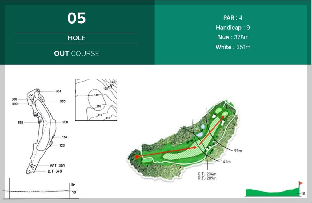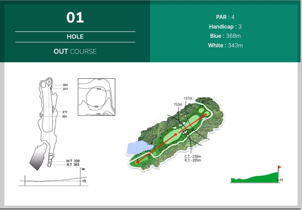 • 일반적으로 맞바람일 때가 많아 클럽선택에 신중해야 하며, 그린 좌측을 공략하는 것이 유리하다.