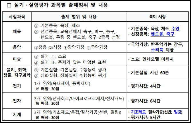 1) 1차 시험 출제범위 및 배점