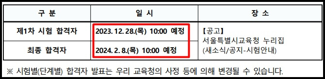 - 제1차 시험 합격자 발표: 2023. 12. 28.(목) 10:00 예정