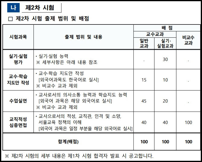 2) 2차 시험 출제범위 및 배점