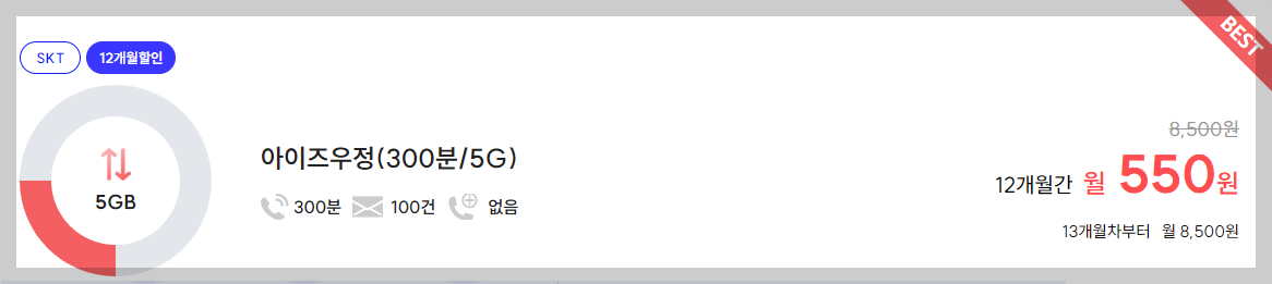ESIM요금제 Top3는 아이즈모바일입니다. 현재 가장 저렴한 요금제가 무려 1년동안 월550원 요금제가 있습니다. 아이즈모바일이 좋은 건 '평생할인' 요금제가 있다는 건데요. 평생 월 3,500원 요금제도 있으니, 프로모션 가격 신경쓰기 귀찮다고 느끼시는 분들은 아이즈 모바일도 한번 구경해보시기 바랍니다.